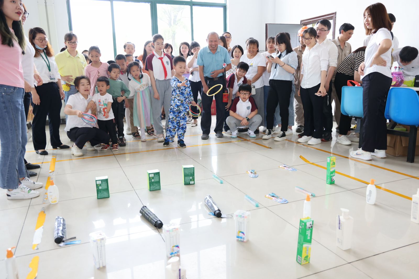 六一套圈圈,套住幸福,套住快樂(lè)。翻滾式、飛躍式、天女散花式的套圈現(xiàn)場(chǎng),宛如一個(gè)兒童樂(lè)園,隨著一個(gè)個(gè)圈圈在空中劃過(guò),現(xiàn)場(chǎng)掌聲、歡呼聲此起彼伏,一個(gè)個(gè)獎(jiǎng)品也被陸續(xù)套走,大家滿(mǎn)載而歸,孩子們套中了物品,也套中了幸運(yùn)和快樂(lè)。