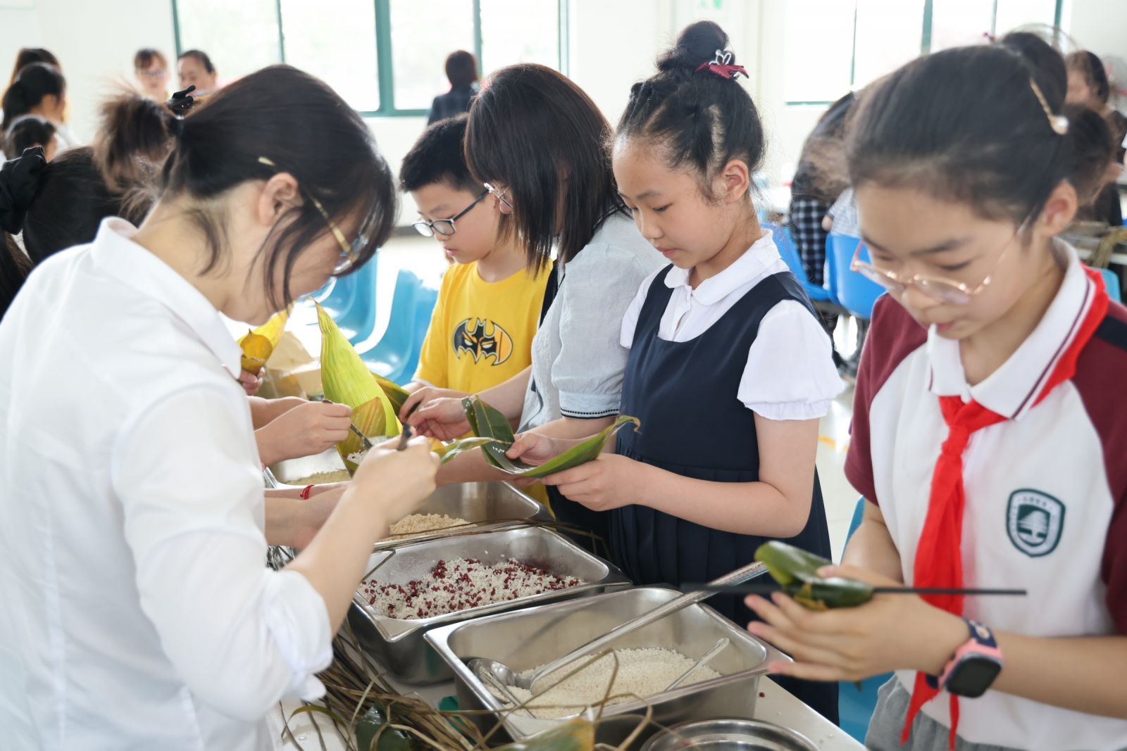 你拿粽葉我添米、你放餡來(lái)我纏線,小朋友們興致高昂,在家長(zhǎng)的幫助和指導(dǎo)下,小朋友們也加入到包粽子行列。包好的粽子扁圓尖細(xì)、形態(tài)各異,有嬌小玲瓏型,有富態(tài)滾胖型,但相同的都是披上了“綠色、吉祥、歡樂(lè)”的外衣,整個(gè)下午,食堂里洋溢著濃濃的節(jié)日氣息,歡聲笑語(yǔ)不斷。