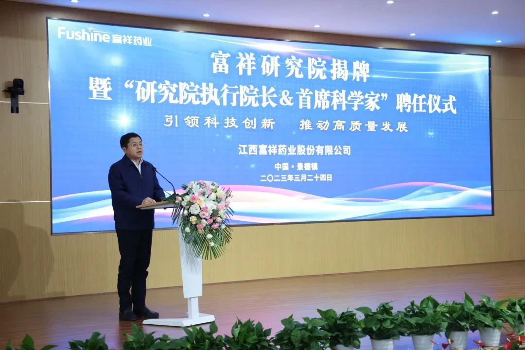 高新區(qū)管委會主任、昌江區(qū)委書記倪衛(wèi)春在致詞中指出,富祥藥業(yè)是全市優(yōu)質(zhì)的民營企業(yè)代表之一,多年來深耕醫(yī)藥大健康產(chǎn)業(yè),主動轉(zhuǎn)型升級,在新賽道上又邁出了堅實的一步。研究院的成立是立足自身產(chǎn)業(yè)特色、增強工業(yè)研發(fā)實力、助推新舊動能轉(zhuǎn)換的重要舉措,將成為招大引強的重要平臺、人才集聚的重要基地、工業(yè)倍增的重要助力,對全區(qū)乃至全市的工業(yè)發(fā)展和科技創(chuàng)新領域都具有重要意義。昌江區(qū)將繼續(xù)堅持以服務工業(yè)發(fā)展、服務科技創(chuàng)新為己任,積極提供最優(yōu)質(zhì)的服務、創(chuàng)造最優(yōu)良的環(huán)境,幫助研究院和廣大優(yōu)質(zhì)企業(yè)盡快發(fā)展壯大,推動技術成果更快轉(zhuǎn)化為現(xiàn)實生產(chǎn)力,助力全市經(jīng)濟社會持續(xù)健康發(fā)展。