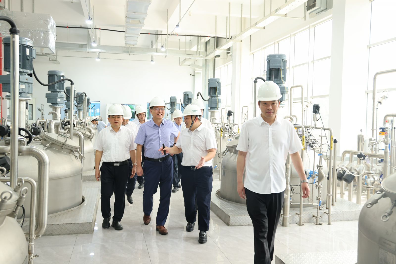 會前,江西師范大學一行先后參觀了景德鎮(zhèn)富祥生命科技有限公司、江西富祥藥業(yè)股份有限公司、江西祥太生命科學有限公司廠區(qū),重點參觀了公司微生物蛋白生產(chǎn)車間。